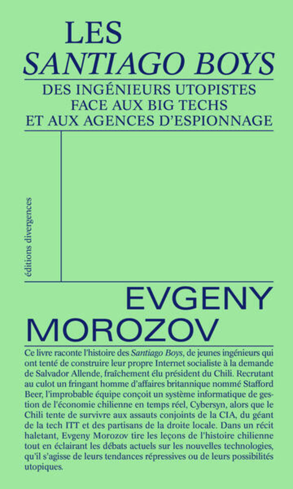 Ce livre raconte l'histoire des Santiago Boys, de jeunes ingénieurs qui ont tenté de construire leur propre Internet socialiste à la demande de Salvador Allende, alors fraichement élu président du Chili. Recrutant au culot un fringant homme d'affaires britannique, Stafford Beer, l'improbable équipe conçoit un système informatique de gestion de l'économie chilienne en temps-réel nommé Cybersyn, alors que le Chili tente de survivre aux assauts conjoints de la CIA, du géant de la tech ITT, et des partisans de la droite locale.