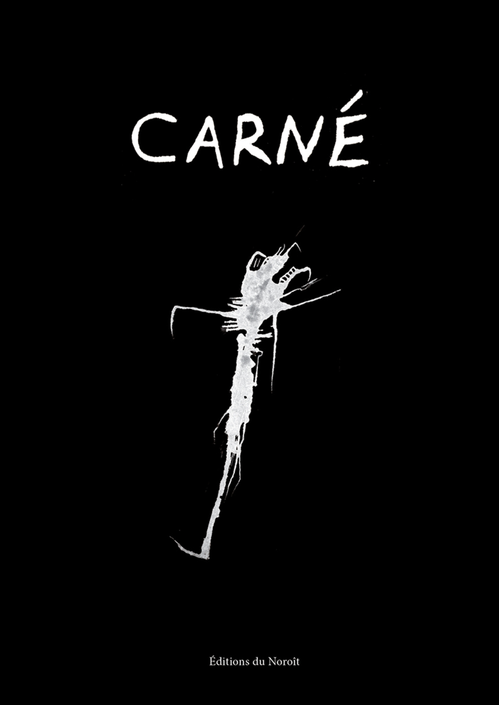 Le Carné est une fresque où se côtoient l’engendrement et la mort, partenaires indissociables, tout comme le sont les mots et les images. Naissance incertaine, trépas en suspens ; si advenir est le but, le prix sera énorme. À travers une collection de dessins-poèmes dont l’agencement se situe à la frontière de la temporalité, du chromatisme et de la figuration, le Carné est aussi le récit de ce péril. Puis, à l’échelle de chaque dessin-poème, on assiste au mouvement de la rencontre : l’élan des mots et celui des images qui s’entrechoquent – parfois jusqu’à l’explosion –, tissent des passerelles, fusionnent en avortons.