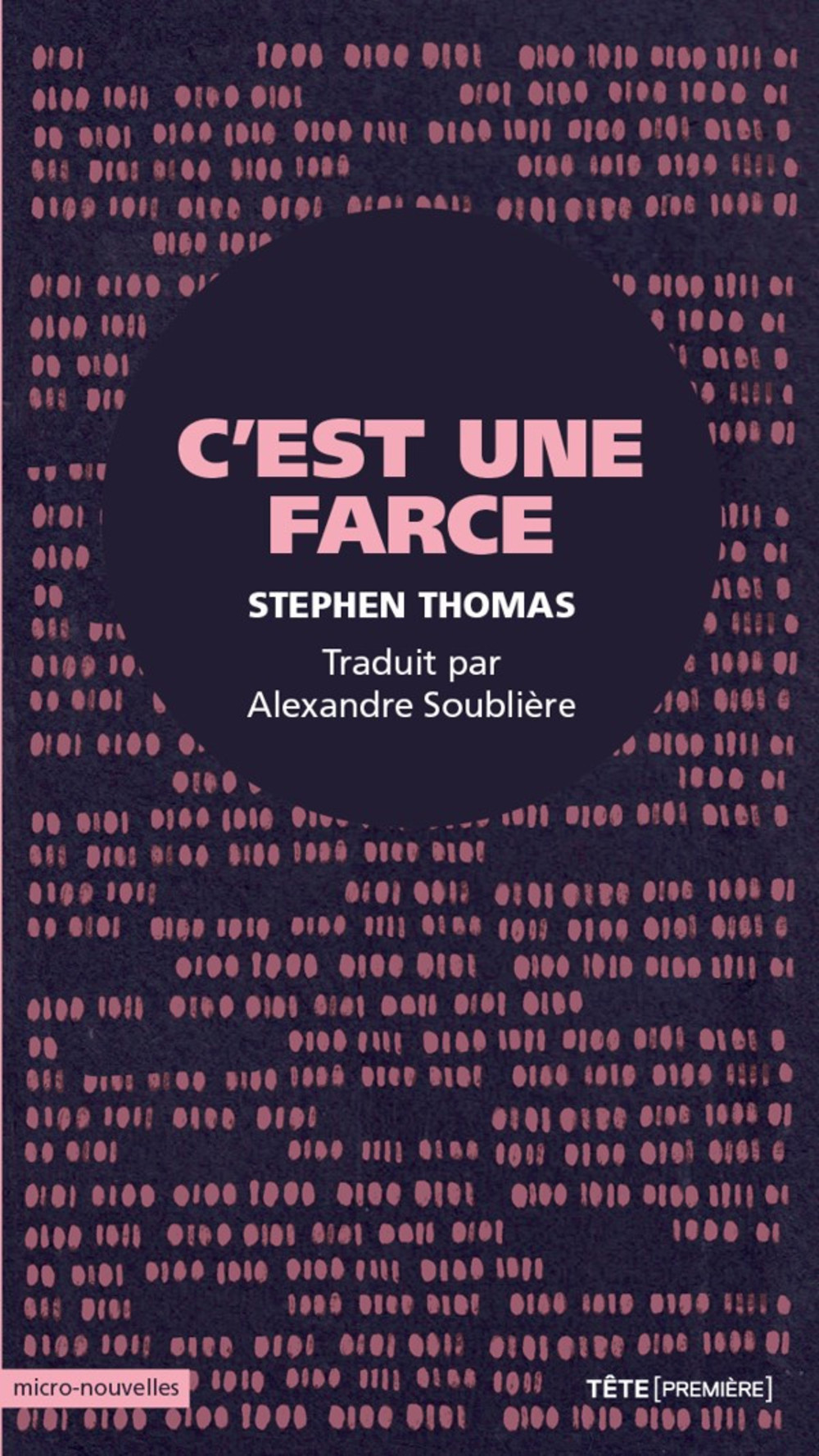 Le premier ouvrage du torontois Stephen Thomas, The Jokes, d’abord publié au Canada anglais chez Book*hug, arrive au Québec sous la plume d’Alexandre Soublière, qui s’est prêté au jeu de la micro-fiction. Ces textes qui empruntent leur forme à celle de la blague n’en sont pourtant pas, loin de là. Le ton désarçonnant de rigidité et l’apparente dépersonnalisation des figures exposées sont autant d’effets narratifs pour surprendre son lecteur avec de profondes considérations philosophiques ou des états méditatifs inquiétants, et aborder entre autres les questions de l’identité de genre, de la sexualité, et des différentes façons d’appréhender le monde. Un critique canadien anglais a par ailleurs comparé les histoires de Thomas aux scènes les plus troublantes du cinéma de David Lynch, pour la description d’une réalité hésitante et en suspension.