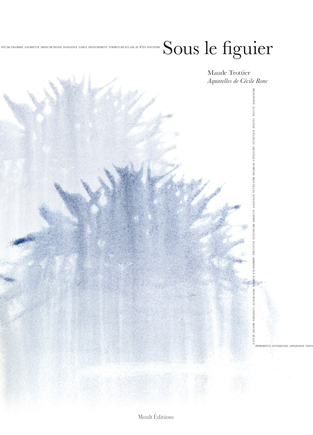 Sous le figuier est le troisième ouvrage à paraître dans la collection Cul-de-lampe, consacrée aux explorations formelles et matérielles, aux relations entre textes et images. Composé à la manière d’un songe et entrecoupé d’aquarelles qui s’agencent autour des figures, ce récit poétique invoque le pouvoir des apparitions, avançant à tâtons le long d’un petit sentier, à la recherche de l’arbre, de ses ombres, de ses femmes intrigantes qui rient aux éclats.