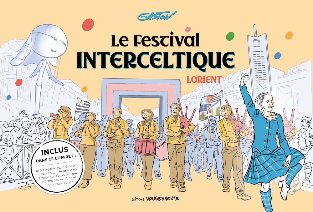 Chaque année, plus de 5 000 musiciens, chanteurs, danseurs, plasticiens, universitaires, cinéastes, d’Écosse, d’Irlande, du Pays de Galles, de Cornouailles, de l’Île de Man, de Galice, des Asturies, de Bretagne, ainsi que de la diaspora celtique à travers le monde (États-Unis, Acadie, Australie, Nouvelle-Zélande…) participent au Festival Interceltique de Lorient (FIL). Plus grand rassemblement des Celtes au monde, il a réuni près d’un million de festivaliers lors de sa 53ème édition en 2024 pendant dix jours de festivités, de festoù-noz (des bals bretons), de conférences, de concerts aux instruments variés, tous les jours, sur différentes scènes. À elle seule, la Grande Parade du Festival Interceltique réunit 92 000 spectateurs. Sans oublier les plus de 2 millions de téléspectateurs devant le spectacle « Horizons Celtiques » et la Grande Parade sur France 3 National. En quoi le FIL est-il un événement incontournable pour les Bretons, et plus largement les Celtes? Comment Lorient devient-elle la capitale de l’interceltisme à chaque édition du festival? Créée en partenariat avec l’association organisatrice de l’événement, Le Festival Interceltique de Lorient est un reportage BD réalisé sur le terrain et dessiné par Gaston, également auteur de Renaud derrière le rideau publié aux éditions Rouquemoute en 2024. Ce coffret collector contient la BD reportage, le drapeau de l’interceltisme, des ex-libris et un marque-page inédits.