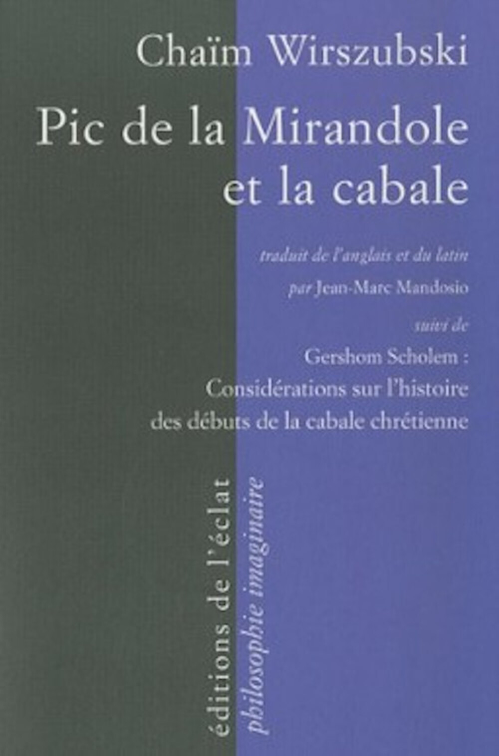 Chaïm Wirszubski (1915-1977) s'installe à Jérusalem en 1933, où il étudie sous la direction de Julius Guttmann et de Gershom Scholem. Son ouvrage posthume, Pic de la Mirandole et la cabale (1989), éclaire d'un jour nouveau les Conclusions cabalistiques de Pic, éditées et commentées ici à la lumière des traductions latines de Mithridate, et révèle l'importance des œuvres d'Abraham Abulafia et de Menahem Recanati - dont de nombreux extraits sont traduits ici pour la première fois en français - dans la " philosophie nouvelle" a laquelle aspirait Pic de la Mirandole.