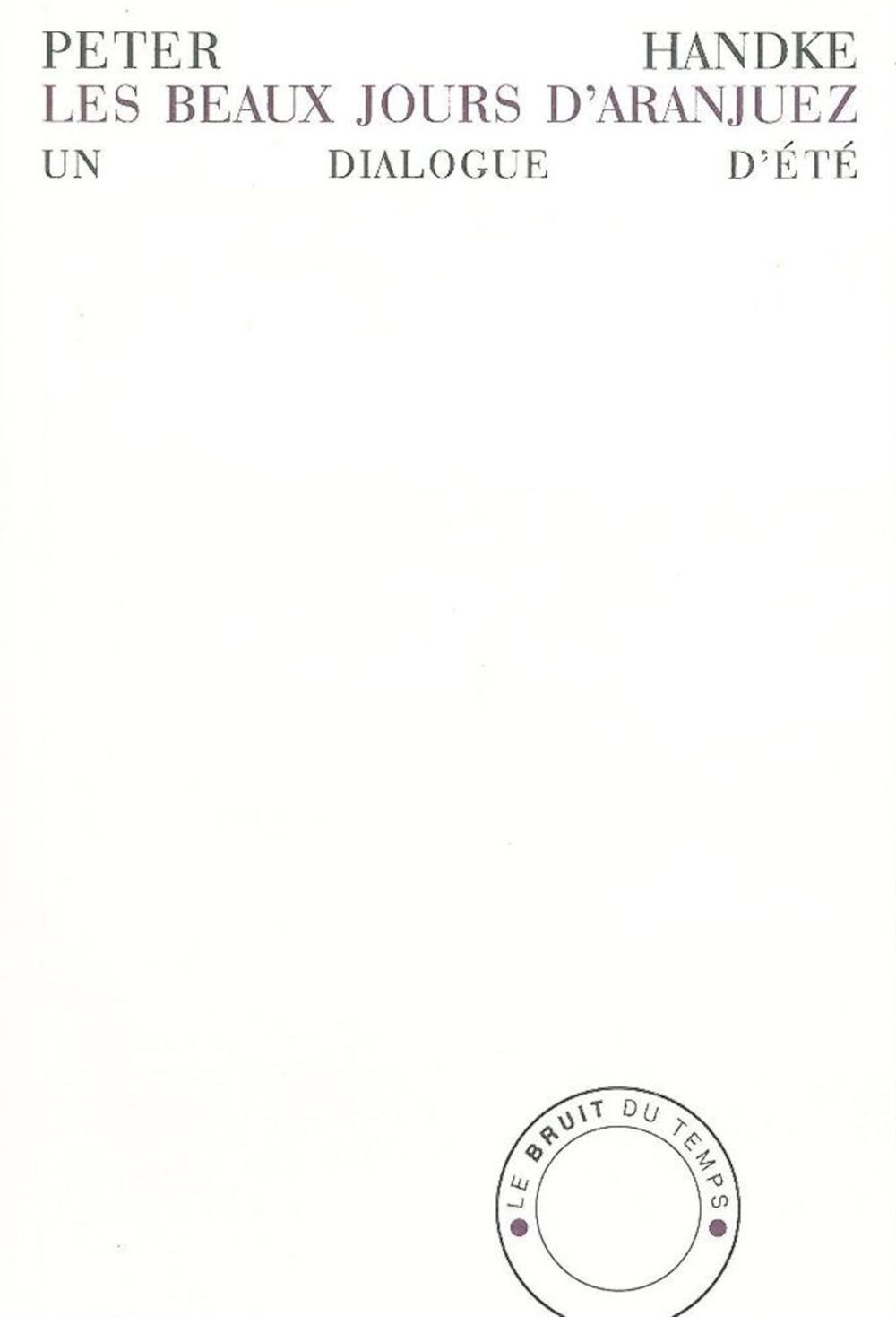 Comme Jusqu’à ce que le jour vous sépare, écrit comme une suite de La Dernière Bande de Beckett, Les Beaux Jours d’Aranjuez a été écrit directement en français, l’été dernier. C’est un très émouvant dialogue sur l’amour, dans une tradition que l’on pourrait faire remonter au Banquet de Platon. Une femme et un homme, dans la complicité que permettent sans doute une longue intimité et la beauté d’un soir d’été, parlent de l’amour, de la première fois, échangent des souvenirs intimes heureux ou malheureux dans un jardin qui est comme le premier jardin. Ils en parlent comme s’ils cherchaient à se remémorer chaque fois ce qui, dans l’amour et jusque dans ce qu’il peut avoir de trivial, de dur parfois, exalte l’homme et la femme jusqu’à les hausser au rang de rois et de reines, les illumine d’une lumière qui en fait l’égal des dieux. Et à ces souvenirs se mêlent, comme toujours chez Handke, des descriptions qui témoignent d’une attention exceptionnelle au monde, à la nature, à ces signes presque imperceptibles qui sont indissociables des mystères de l’amour que l’homme et la femme cherchent à déchiffrer.