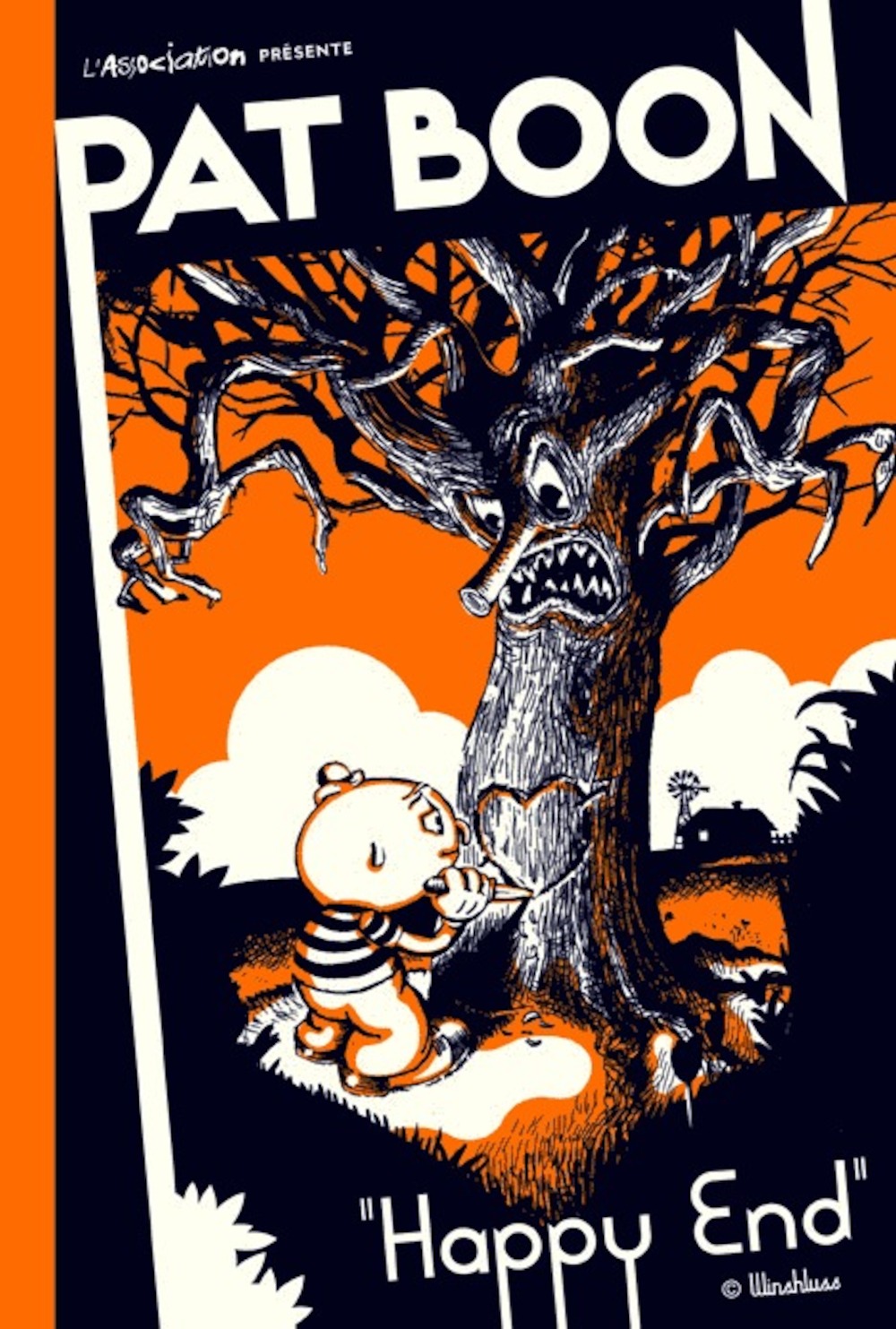 Pour son premier album à l'Association, Winshluss, bien connu des lecteurs de Jade et du Ferraille illustré, a sorti de ses cartons un petit personnage tout rond, souvent comme une queue de pelle et malheureux comme une pierre : Pat Boon, qui se désole la plupart du temps de n'avoir pas de femme à se mettre sous la dent, évolue dans un univers à la croisée de Donaldville et de Bukowski. Son acolyte alcoolique et pourvoyeur de plans foireux, Fat Slim, est tout aussi raté que lui, bien que moins romantique, donc mieux préparé à la vie des laissés pour compte sur terre. D'histoires courtes en strips, Winshluss s'amuse avec sa galerie d'actrices potiches et couche-toi là, de mémés acariâtres, d'ours producteurs de porno, de bluesmen ayant chanté tout l'été et de membres du ku klux klan en vadrouille, et explore ici ses influences américaines : sur fond de crise de 1929, il signe une fable urbaine et désopilante, entre Crumb et Vuillemin.
