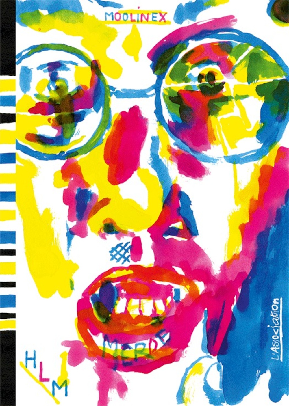 Ce carnet, reproduit ici dans son intégralité, est issu d'une série réalisée dans l'exiguïté de son appartement HLM poitevin. HLM est la Bible, le codex qu'il manquait pour aborder son œuvre prolifique. En artiste complet, Moolinex montre ici sa maîtrise de différentes techniques (feutre, collages, gouache) dans des pages aux allures de carnaval, qui voit défiler militaires, super-héros de pacotille et slogans brandis en hommage à la médiocrité banale de l'espèce humaine.
