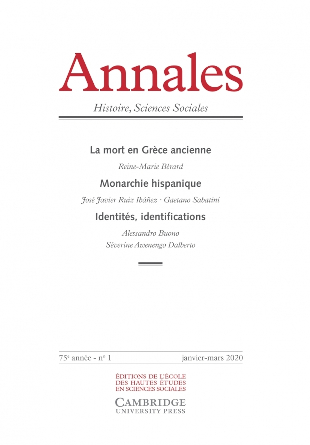 Annales histoire sciences sociales, 2020, no 01