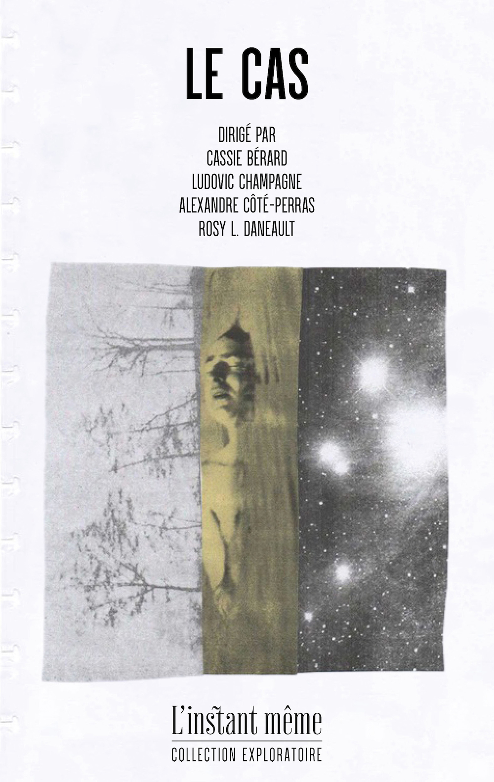 Sous forme d’enquête fracturée, et sous la direction de Cassie Bérard, Ludovic Champagne, Alexandre Côté-Perras et Rosy L. Daneault, le collectif d’auteurs « La Preuve » propose dans Le Cas une trame judiciaire dans laquelle s’imbriquent les textes de chacun. Enrichi de documents d’archives, le résultat se manifeste comme une « preuve », un objet intrigant d’enquête et de littérature.