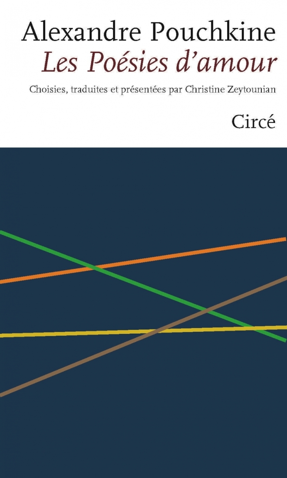 La poésie d'Alexandre Pouchkine coule de source, elle est évidente, immédiate, harmonieuse et limpide. Une grande partie de l'œuvre du génie fondateur de la littérature russe, tout comme sa vie brève et tumultueuse, est placée sous le signe de l'amour, ou plutôt d'amours multiples et variés. Charnel, platonique, passionné, transi, Pouchkine les aura tous connus et célébrés dans ses vers. Et c'est l'amour encore qui causa sa mort suite à un duel. Mais Pouchkine demeure éternellement vivant dans le cœur des Russes et son influence est immense dans son pays et au-delà : « Phénomène extraordinaire, peut-être l'unique manifestation de l'âme russe » selon Gogol. « Sans Pouchkine, déclare Dostoïevski, tous les talents qui ont suivi n'auraient jamais existé ». « Pouchkine m'a inoculé l'amour, le mot “amour” », affirme Marina Tsvetaeva.
