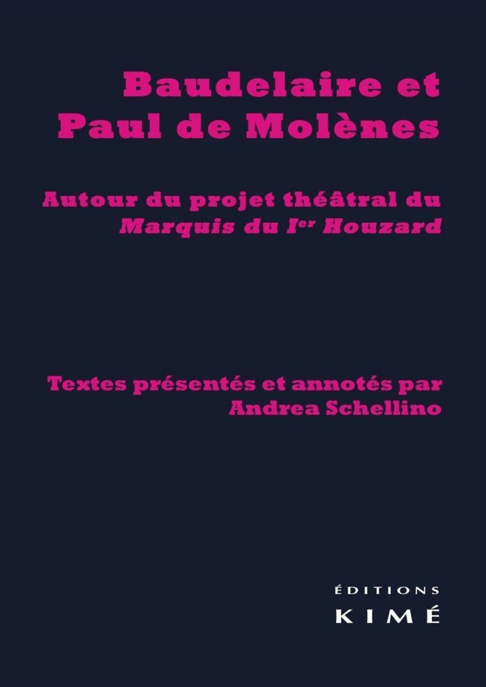 Ce présent ouvrage constitue l’édition critique, contenant un apparat de notes, de trois textes : la nouvelle de Paul de Molènes Les Souffrances d’un houzard (1853) ; le canevas de Baudelaire Le Marquis du Ier houzards ; le drame de MolènesLes Souffrances d’un houzard (1863). Il s’agit d’un ensemble de textes centré sur le projet théâtral de Baudelaire – conçu dès 1859 – d’adapter pour la scène du théâtre parisien de la Gaîté le récit de Paul de Molènes Les Souffrances d’un houzard, paru en édition préoriginale dans La Revue de Paris en juillet 1851. Baudelaire, qui consacra à Molènes en 1862 une notice nécrologique très élogieuse et projeta de l’inclure dans son essai sur le dandysme, avait prévu de collaborer avec cet auteur. Son dessin échoua finalement, mais Molènes tira lui-même un drame de sa propre nouvelle, publié posthume en 1863.