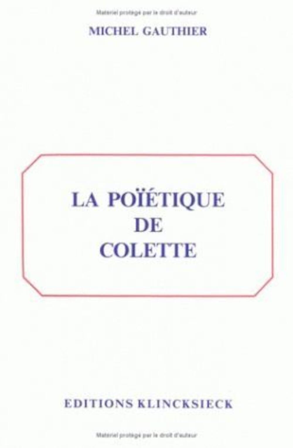 Poïétique de Colette (La)