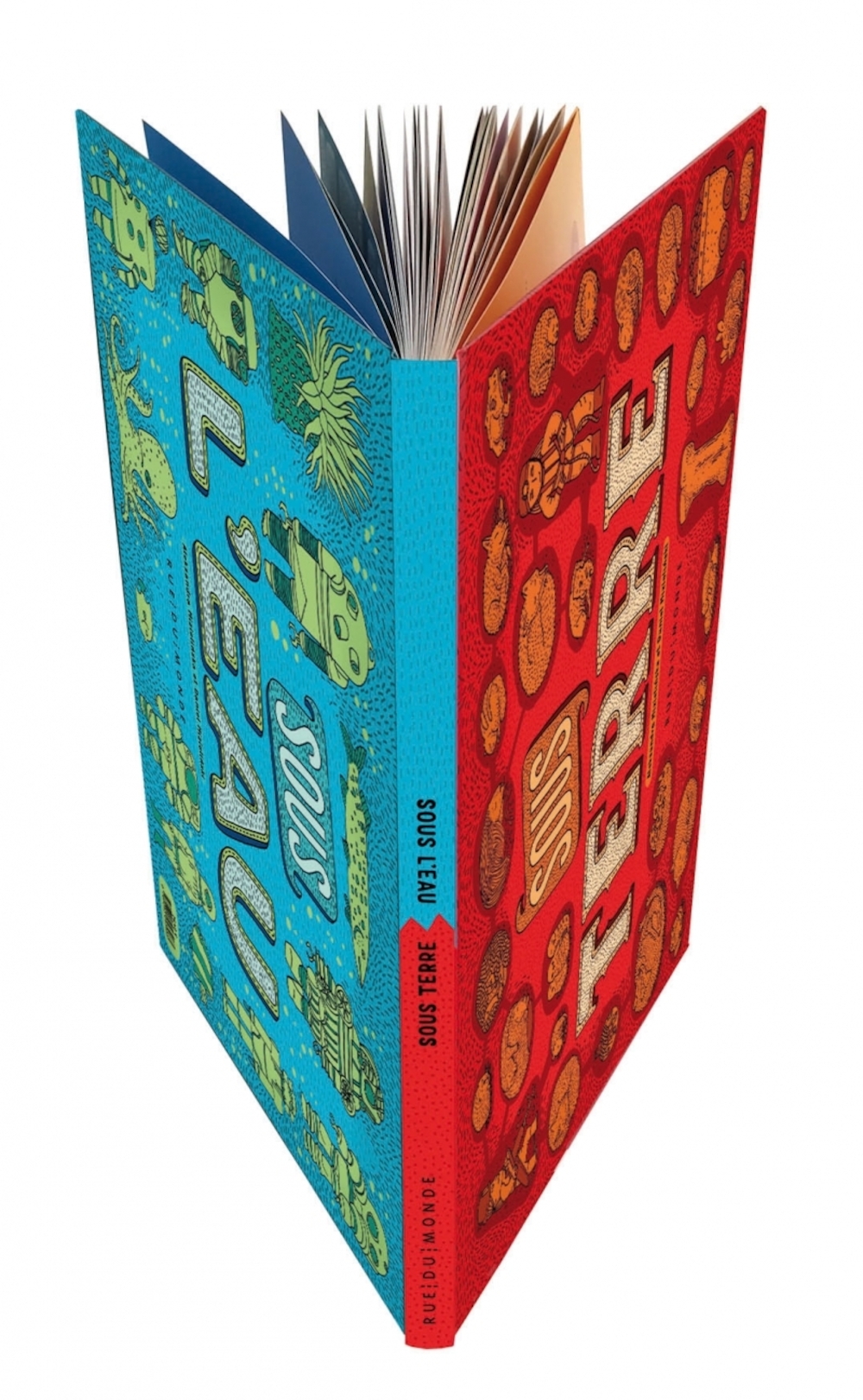 Ce bel album nous livre ainsi les secrets de la vie souterraine et sous-marine partout sous la planète. On pénètre dans des univers aussi variés que l’épave du Titanic, les méandres d’une fourmilière, le coeur d’une mine de fer ou d’un volcan, les récifs coralliens, le circuit des eaux usées ou le métro d’une grande capitale ! Trois thématiques se dessinent au fil des pages : la diversité des richesses naturelles, l’intervention de l’homme et les traces laissées par le passé.