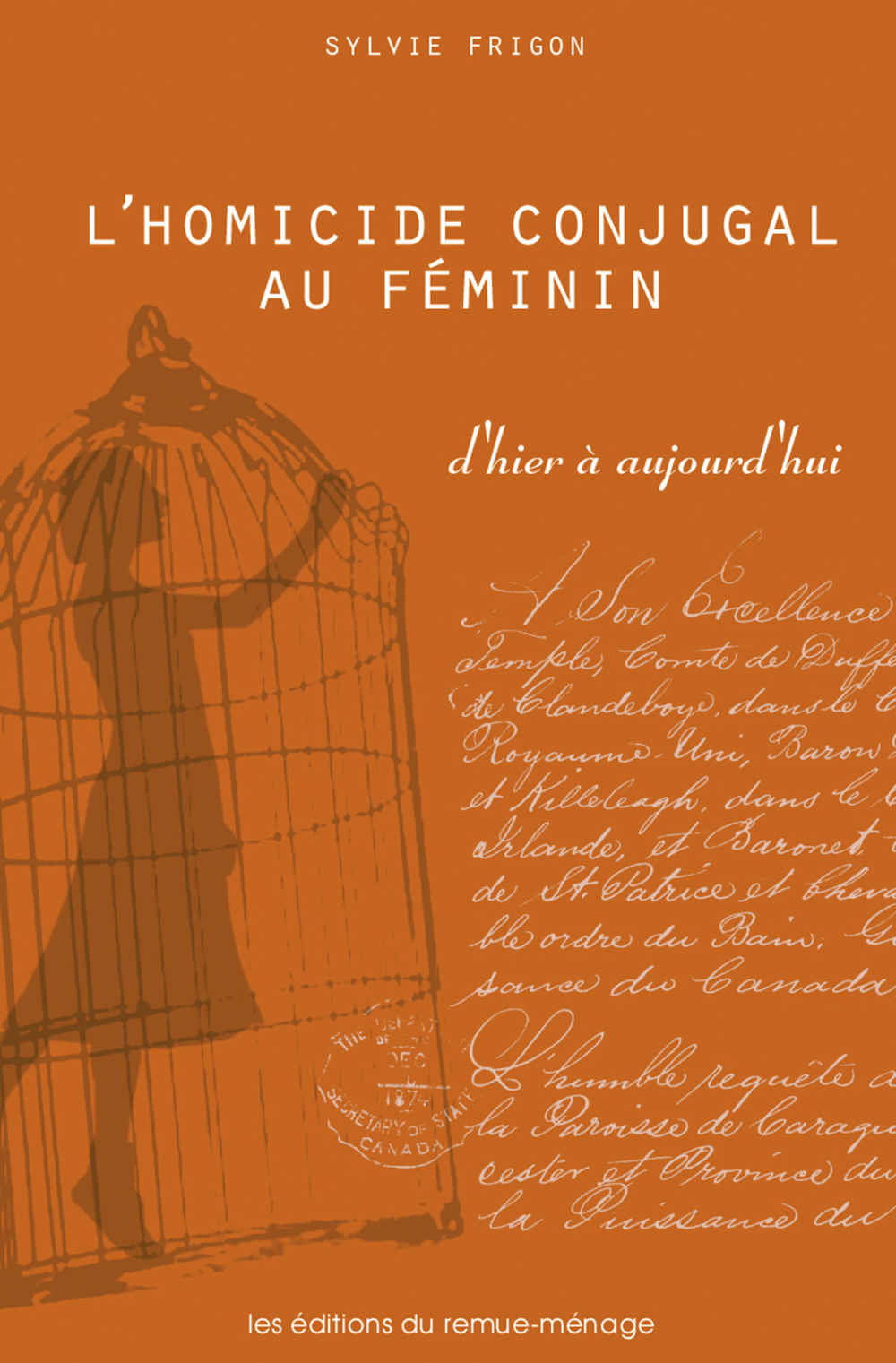 Sylvie Frigon est professeure titulaire au département de criminologie de l’Université d’Ottawa. Elle est notamment l’auteure de L’homicide conjugal au féminin : d’hier à aujourd’hui (Remue-ménage, 2003) et du roman Écorchées (Remue-ménage, 2006). Elle a écrit sur le corps, la santé mentale et l’incarcération, ainsi que sur l’emploi et la réinsertion sociale. Elle propose des ateliers de théâtre en prison et a récemment publié un roman jeunesse, Ariane et son secret (Remue-ménage, 2010), qui évoque la réalité des enfants dont la mère est en prison.